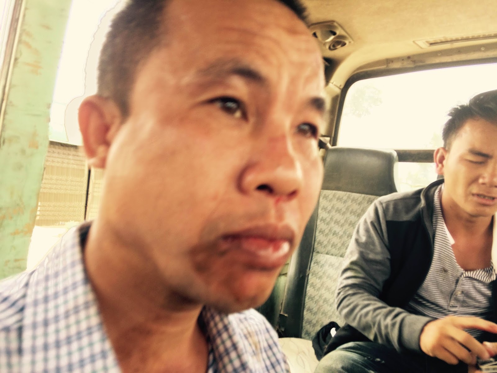 Trong số những kẻ đánh chúng tôi sáng nay có 2 tên mặc áo Công an bên trong bên ngoài hắn mặc áo khoác tối màu, kẻ đánh tôi hôm nay chính là kẻ đã đập vào tay tôi làm tôi bị rơi điện thoại trong sân UB xã Đạ Đờn ngày hôm qua khi đón Trần Minh Nhật. chính tên này là kẻ đầu tiên xông lên xe đánh đập và lôi chúng tôi xuống, hắn là kẻ đánh anh Trương Minh Tam lôi tay anh ra cho đồng bọn lôi anh Tam xuống đánh và hắn tiếp tục đánh tôi và đánh Chu Mạnh Sơn, chúng đã đập nát cái điện thoại Iphone của Sơn. Túi sách của tôi và của anh Trương Minh Tam đã bị nhóm côn đồ kia lôi xuống vệ đường lục lọi nhưng không có gì lên chúng vứt hết ở vệ đường.